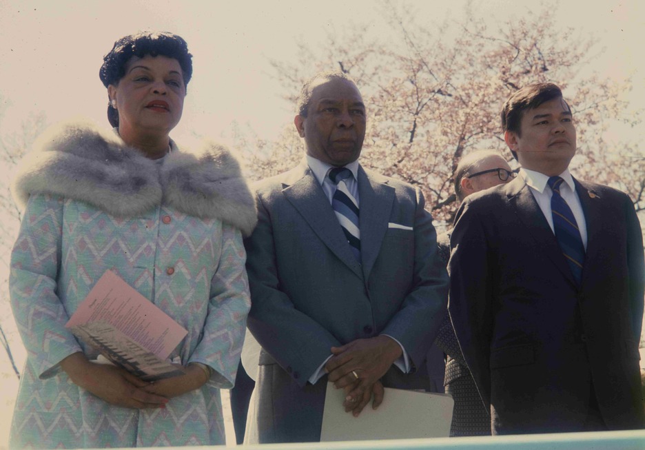People standig during Cherry Blossoms festival in Washington D.C. in National Capital Parks.