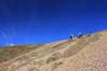Visitors on a discovery hike pause their descent to view a Dall sheep