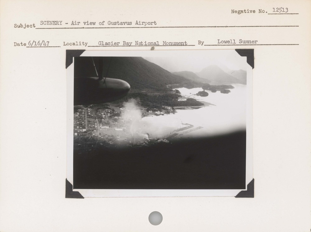 Scenery: Air view of Gustavus Airport. Negative #: 12513. Locality: Glacier Bay National Monument.