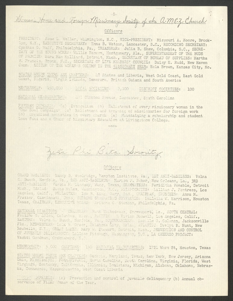 NCNW meeting minutes, 1952