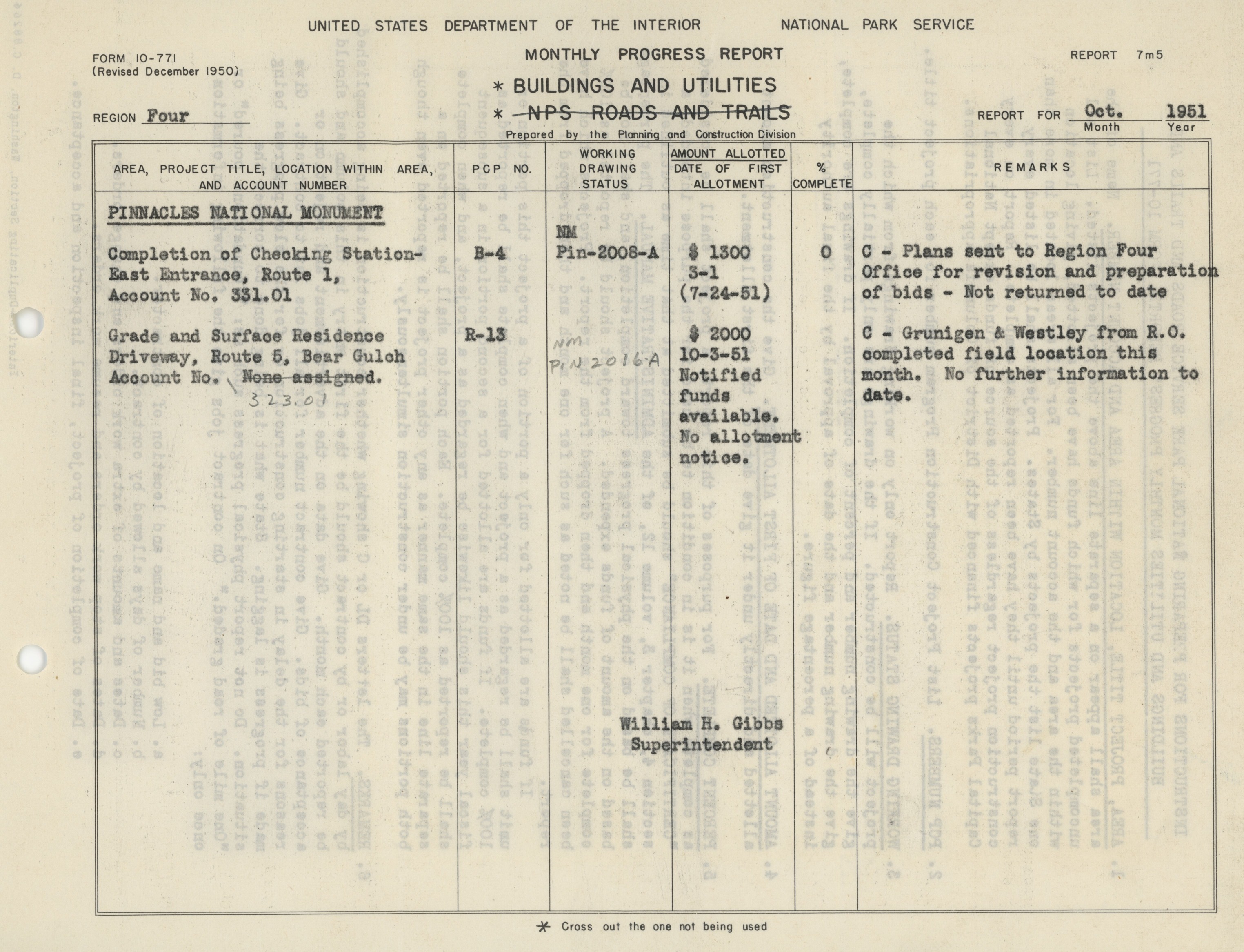 Original ID Reports: Monthly Progress Report on Physical Improvements or Minor Roads and Trails 1933-1952, 8.5 x 11 inches