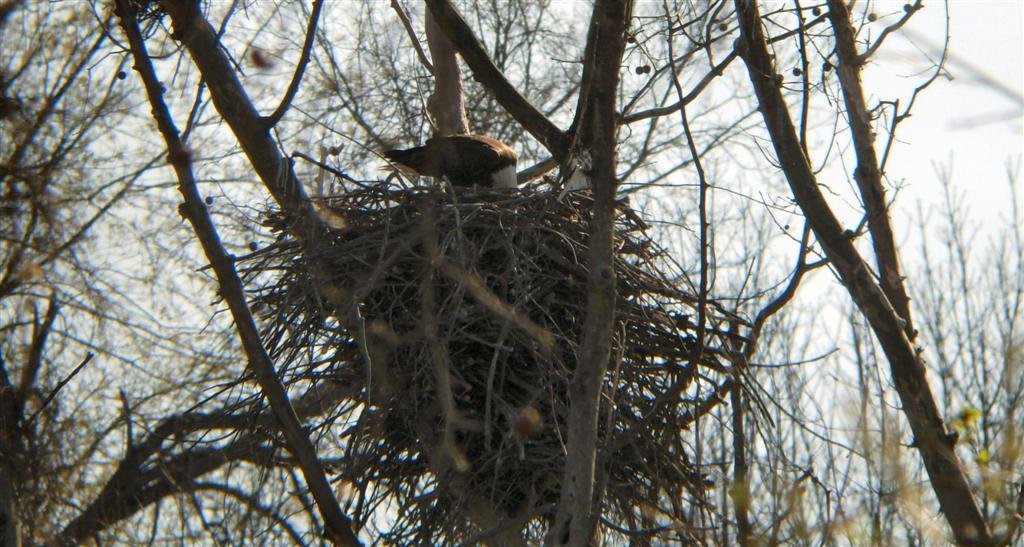 In 2007 a pair of bald eagles nest in the Pinery Narrows heronry. The parents feed the chick. Initially there are two eaglets but one dies shortly after hatching. Photographer Lisa Romaniuk is an Ohio Department of Natural Resources volunteer who is monitoring the nest.