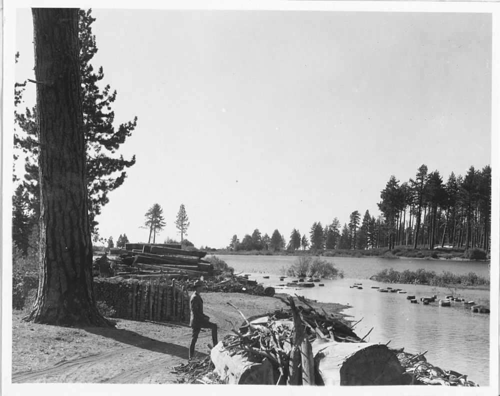 Administrative Collections: Album 5 (Emergency Conservation Works) -Before, during, and after views of brush and snag cleanup at Manzanita Lake.
