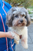Dog being held by owner