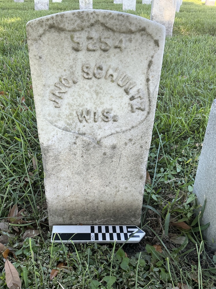 Headstone at Chalmette National Cemetery. Grave ID: 5254. Located at Section 65, Row 1, Site Number 8. Photo taken as part of the 2024 condition assessment and inventory.