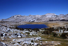 Evelyn Lake from ridge above Rafferty Peak, A1357, 16I, Lakes, A-17-L-5, August 1950, Original, Mary V Hood, A-22-034-001