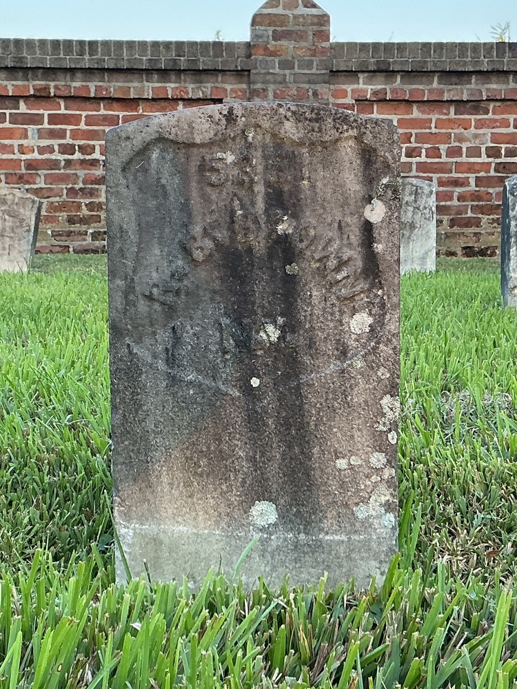 Front of historic upright marble headstone with recessed shield face.