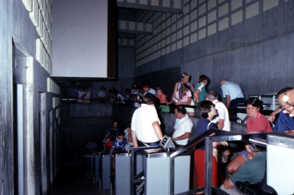 Visitors waiting for the capsules. ; August 1980