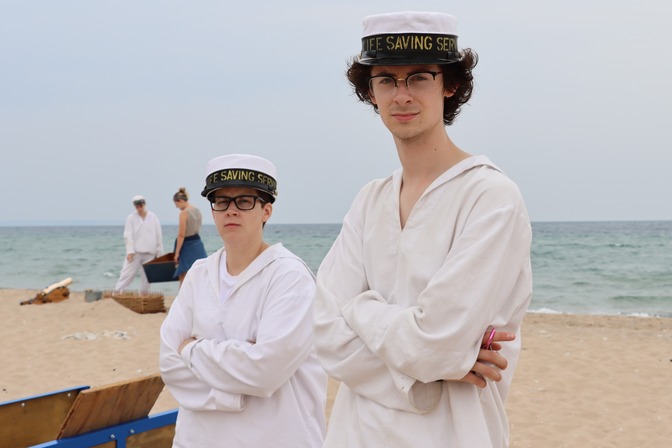 Surfmen Britt and Merrick look on disapprovingly at the prospect of someone needing to be rescued.