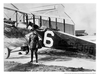 A pilot stands next to the #6 biplane at Crissy Field, date unknown