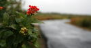 A plant with a red bloom next to the trail