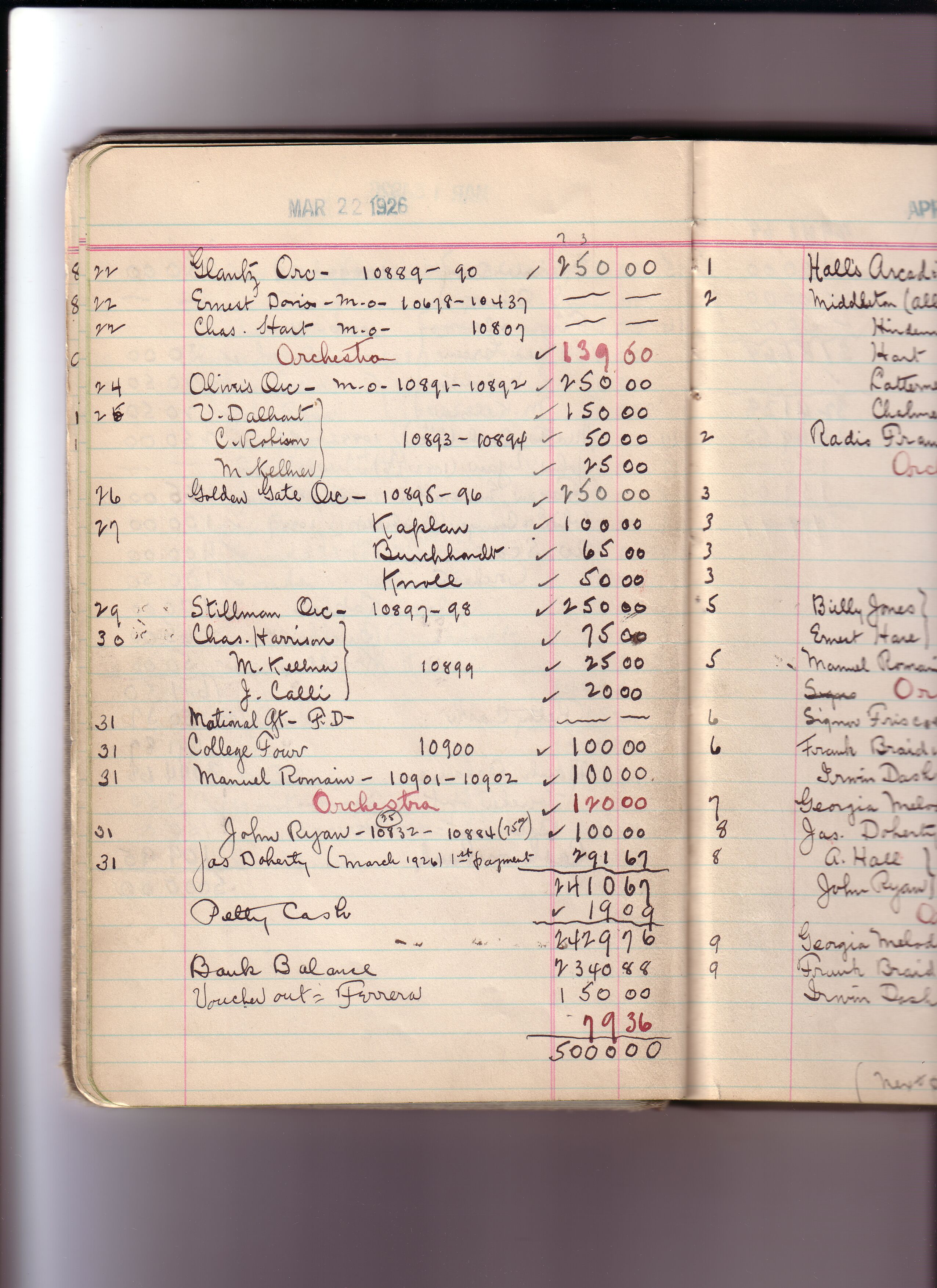 Thomas Edison's New York City Recording Studio Cash Book 19 (of 21), Image 26 (of 116).