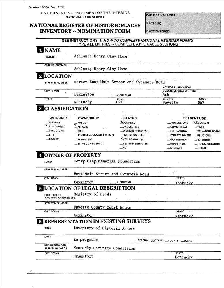 Lexington ; 2 mi. SE of Lexington on Richmond Rd.