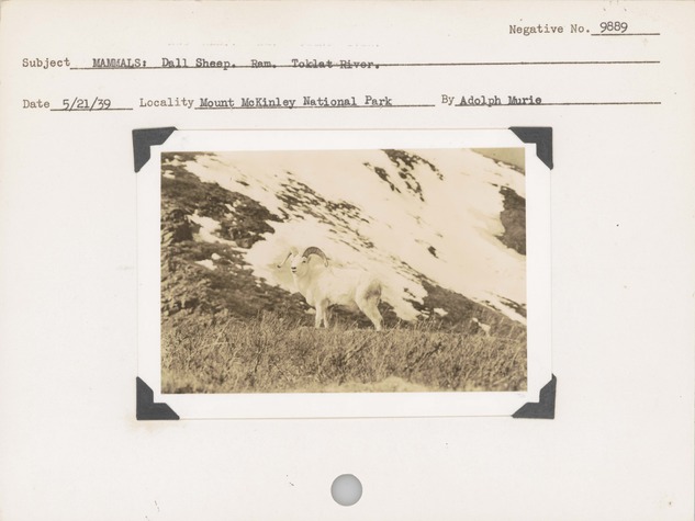 Mammals--Dall Sheep. Ram. Locality: Toklat River, Mount McKinley Park [Denali National Park & Preserve]. Negative #: 9889