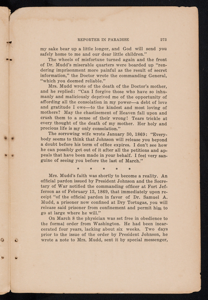 Scanned page from "Reporter in Paradise When Tragedy Stalked Near Key West: Dr. Mudd, Fort Jefferson, and Dry Tortugas America's Devil Isle."