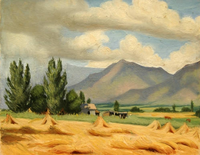 Dorothy Weir Young. Mountains and Hay, ca. 1930. Oil on canvas, 11 x 14 in. Brigham Young University Museum of Art. University purchase/gift from Mahonri M. Young estate.
