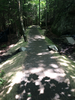 Valley Trail, 2017. Finished causeway trail construction on the Valley Trail. Stone lintels cover a culvert and the edges are planted with grass.