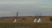 Early evening's golden daylight illuminates the tepees on the prairie north of Fort Union trading post.