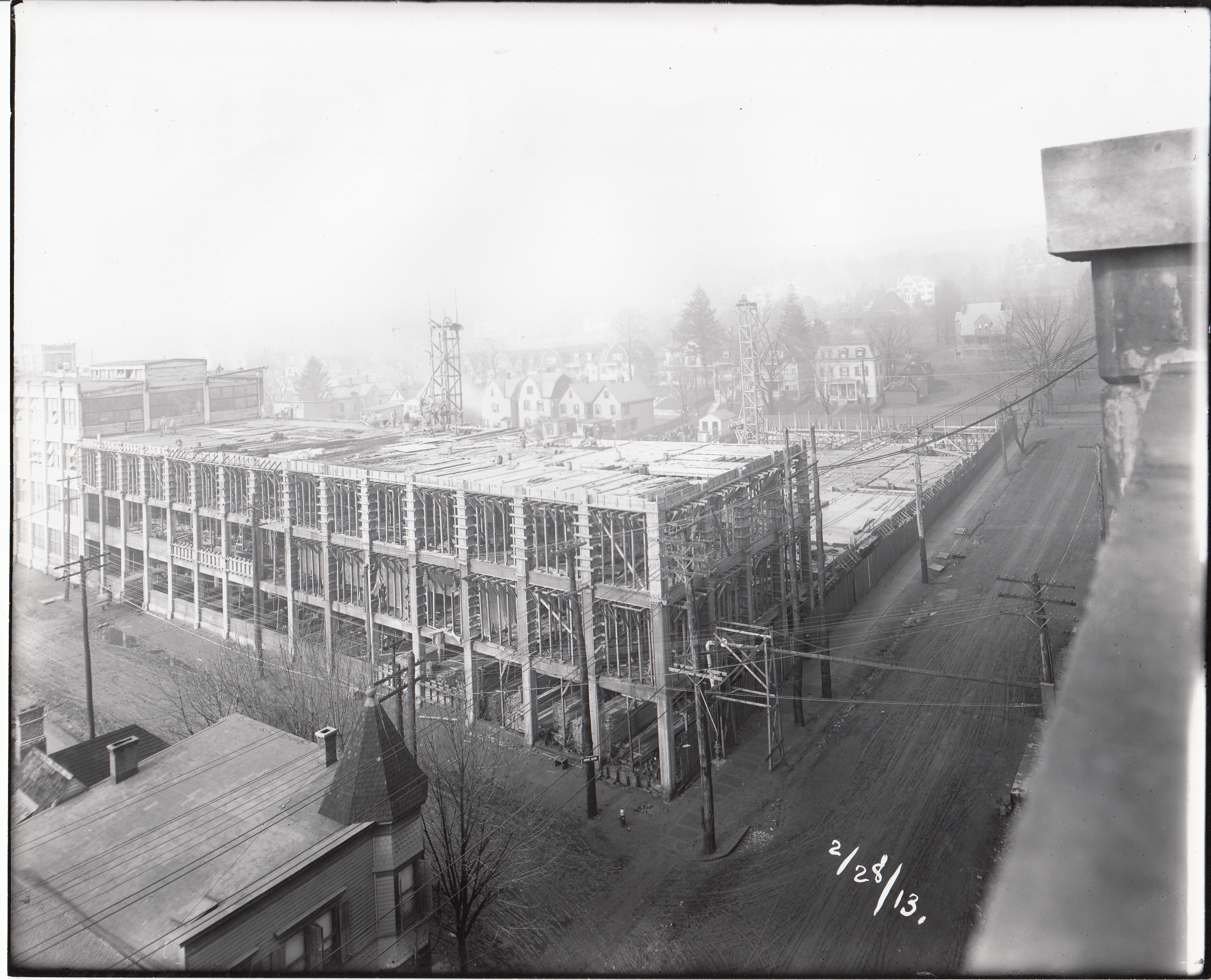 Storage Battery Building under construction, viewed from corner of Ashland Avenue, at left, and Lakeside Avenue.
