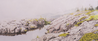 An artist's drawing shows a slope of bedrock with fog in the background and a small pool of water in the foreground