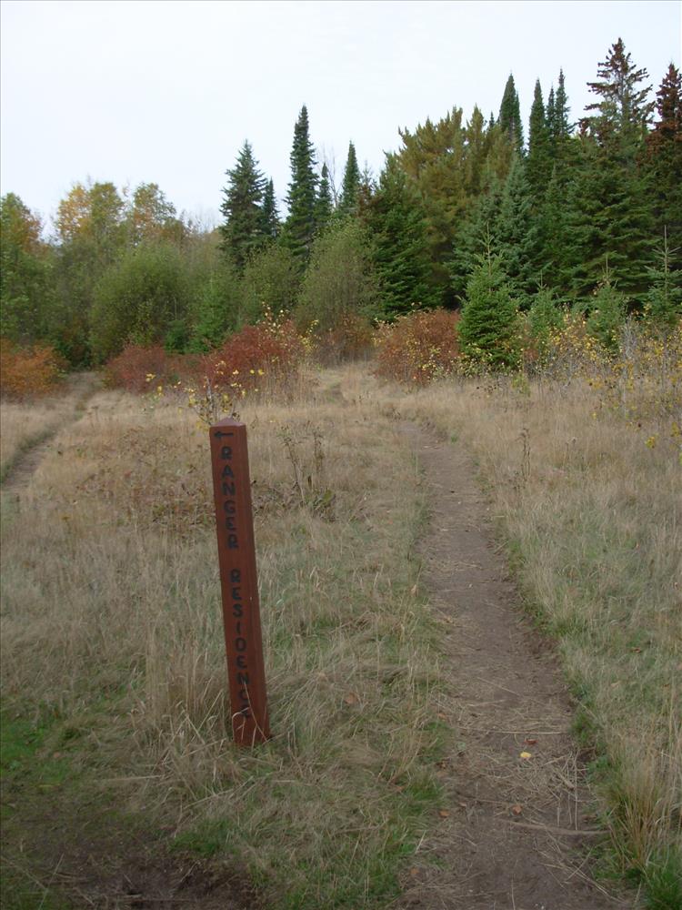 Shows typical sign damage on trails and in campgrounds on Isle Royale.