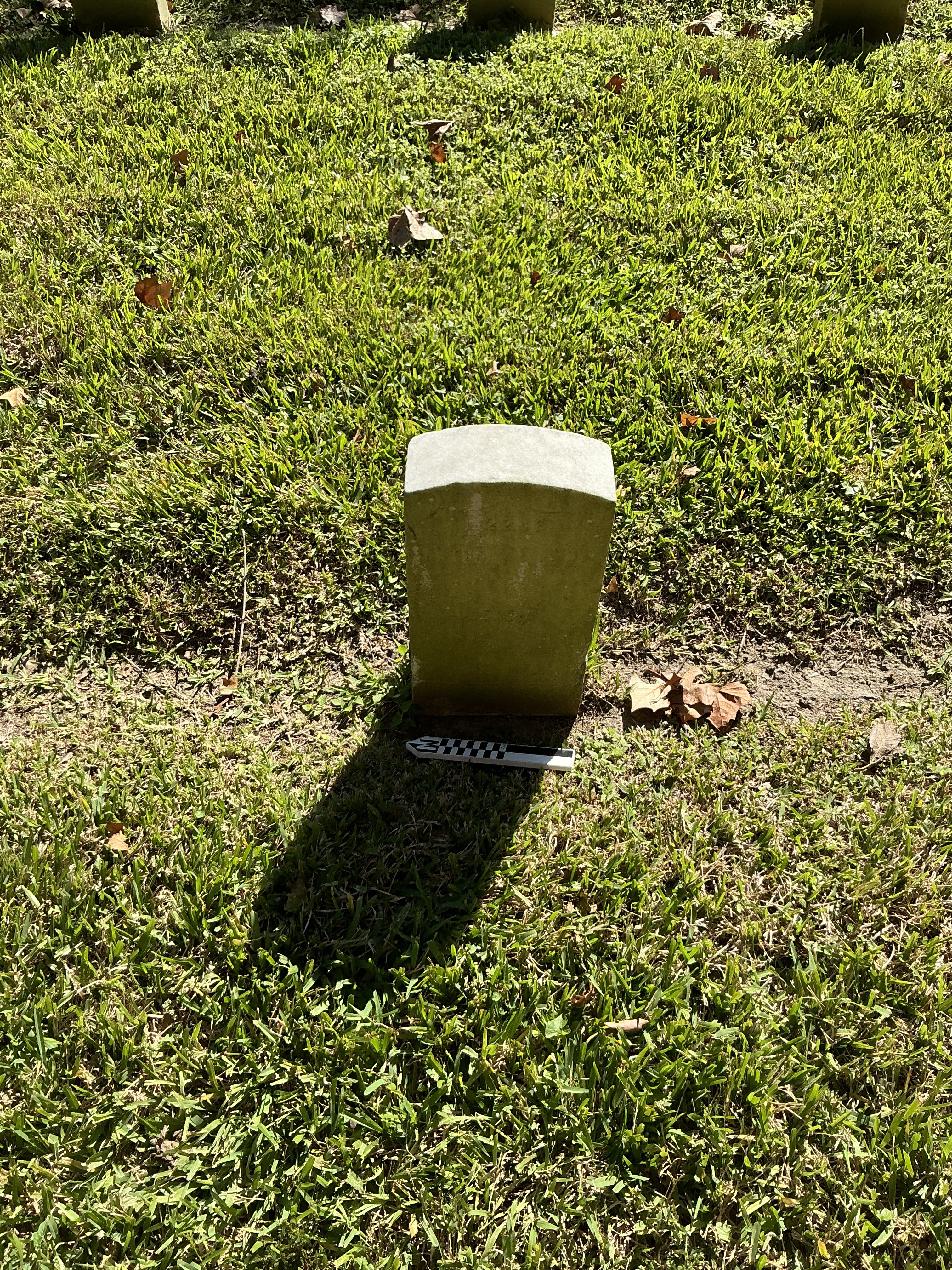 Headstone at Chalmette National Cemetery. Grave ID: 12296. Located at Section 151, Row 4, Site Number 9. Photo taken as part of the 2024 condition assessment and inventory.