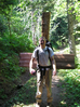A volunteer packs decking in to a bridge repair site on the Wonderland Trail in Stevens Canyon.