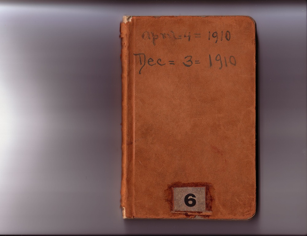 Thomas Edison's New York City Recording Studio Cash Book 06 (of 21), Image 01 (of 43). (Notebook #: PN-10-04-04, NPS catalog #: EDIS 1417), This book documents Diamond Disc matrices 100 – 292, 1115, expenditures for recording artist fees and other payments authorized by studio manager Walter H. Miller from April 04, 1910 – December 03, 1910. Digitally scanned December 2004 through July 2005 at resolution 300 dpi, 24 bit.
