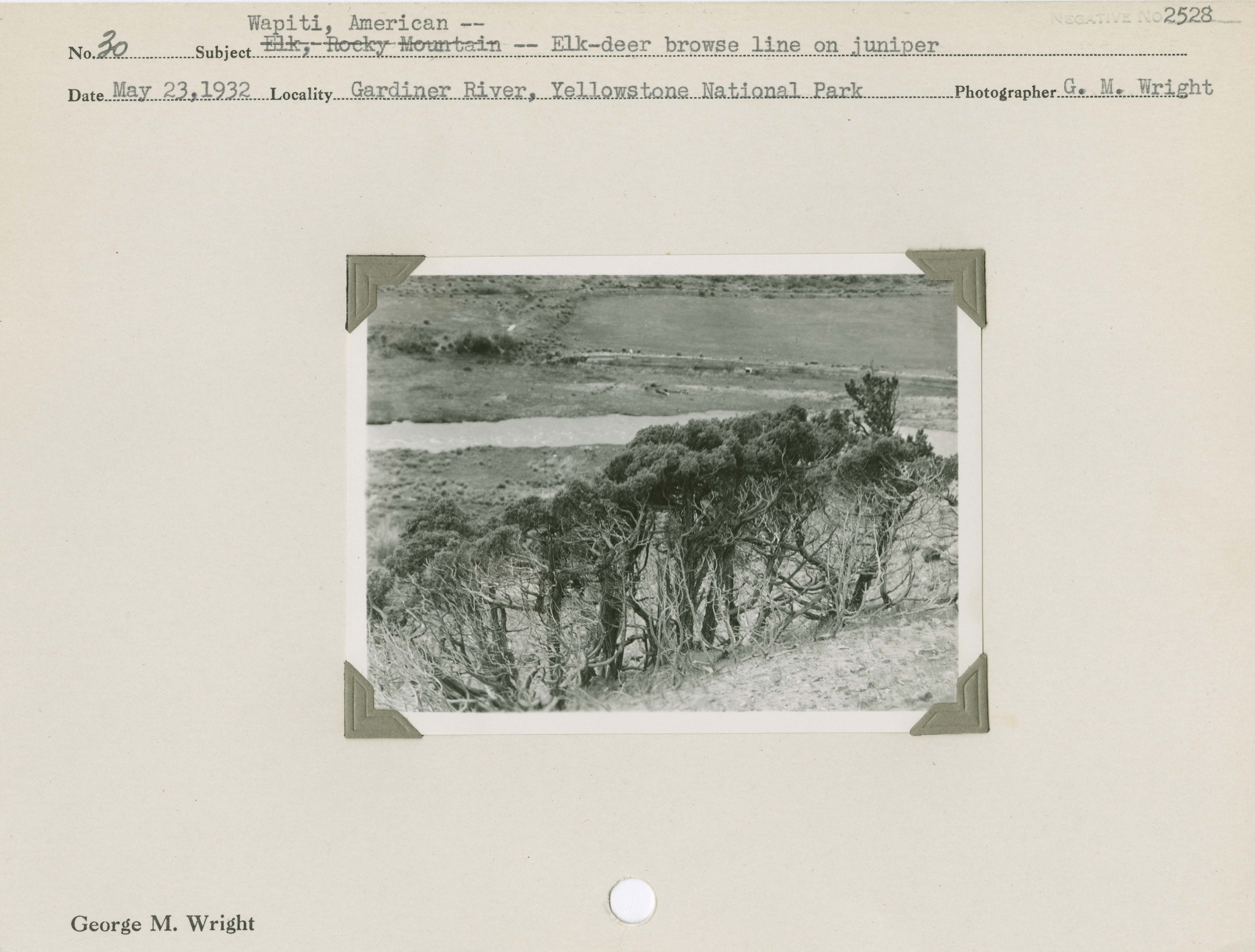 Wapiti, American [Elk] – Elk-deer browse line on juniper. Negative #: 2528. Locality: Gardiner River, Yellowstone National Park.