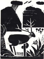 An elk's environment is depicted as a block-like, single color image used to highlight the management situations defined by the National Park Service system categories for park sites. Art exists only on the brochure mechanical/camera copy.