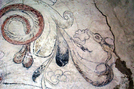 Detail of Fresco at Mission Concepción; unknown if fresco was not completed or whether color wore off.