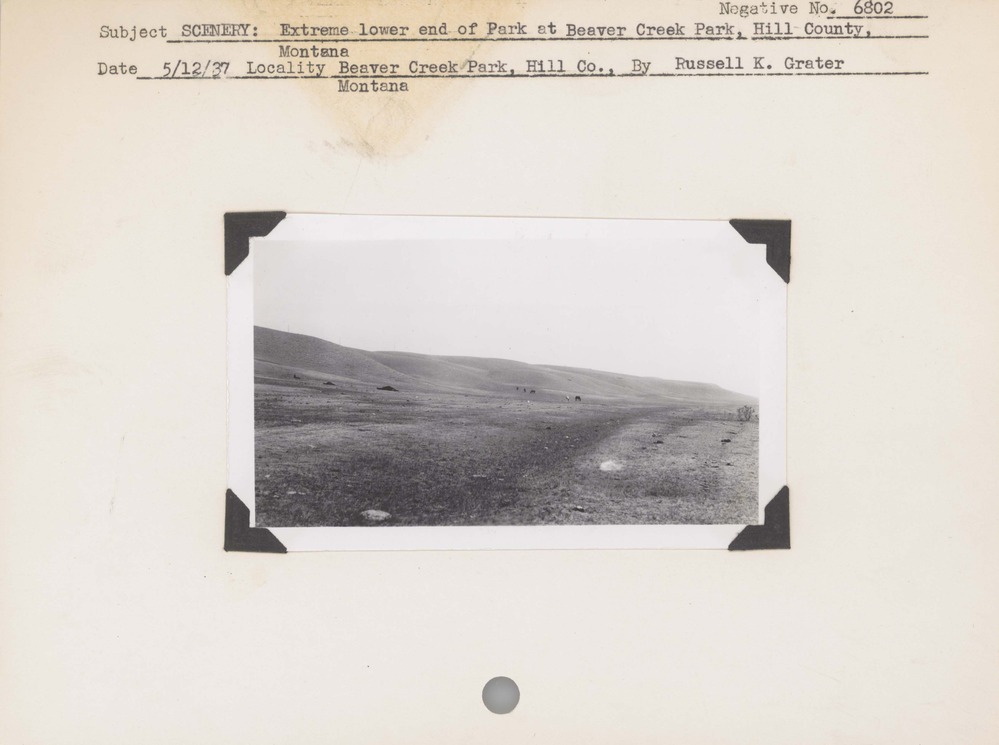 Scenery: Extreme lower end of Park at Beaver Creek Park, Hill County, Montana. Negative number: 6802. Locality: Beaver Creek Park, Hill County, Montana.