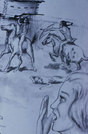 Another segment of #419, woman startled at seeing attacking Indians. (drawing)