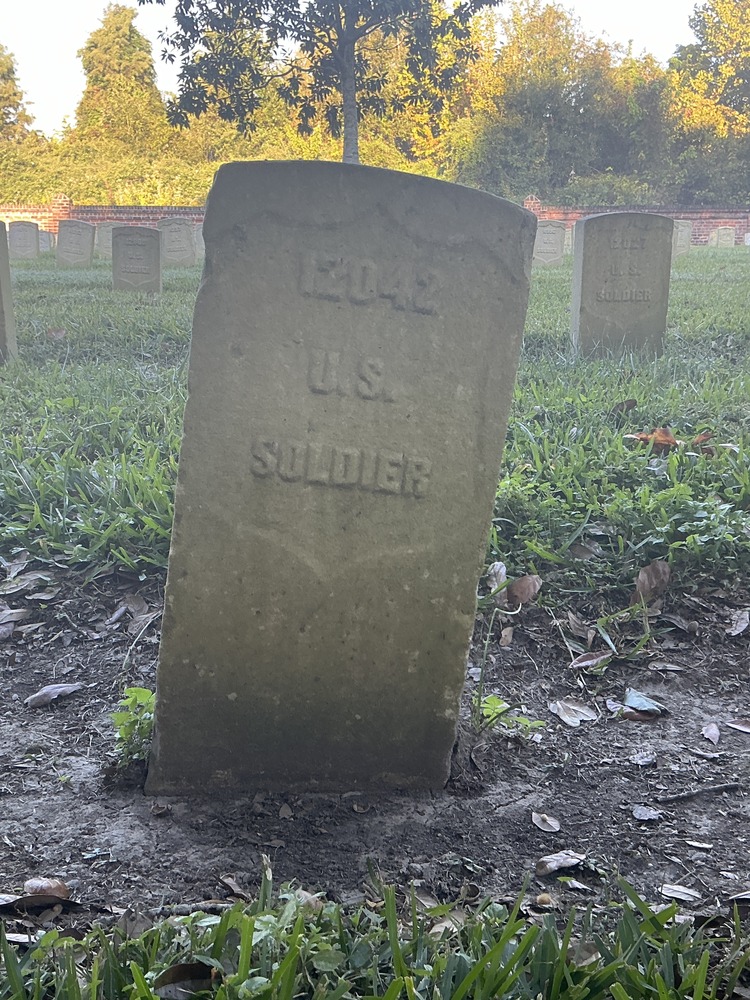 Headstone at Chalmette National Cemetery. Grave ID: 12042. Located at Section 145, Row 2, Site Number 11. Photo taken as part of the 2024 condition assessment and inventory.