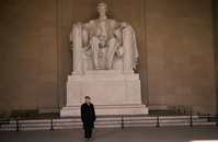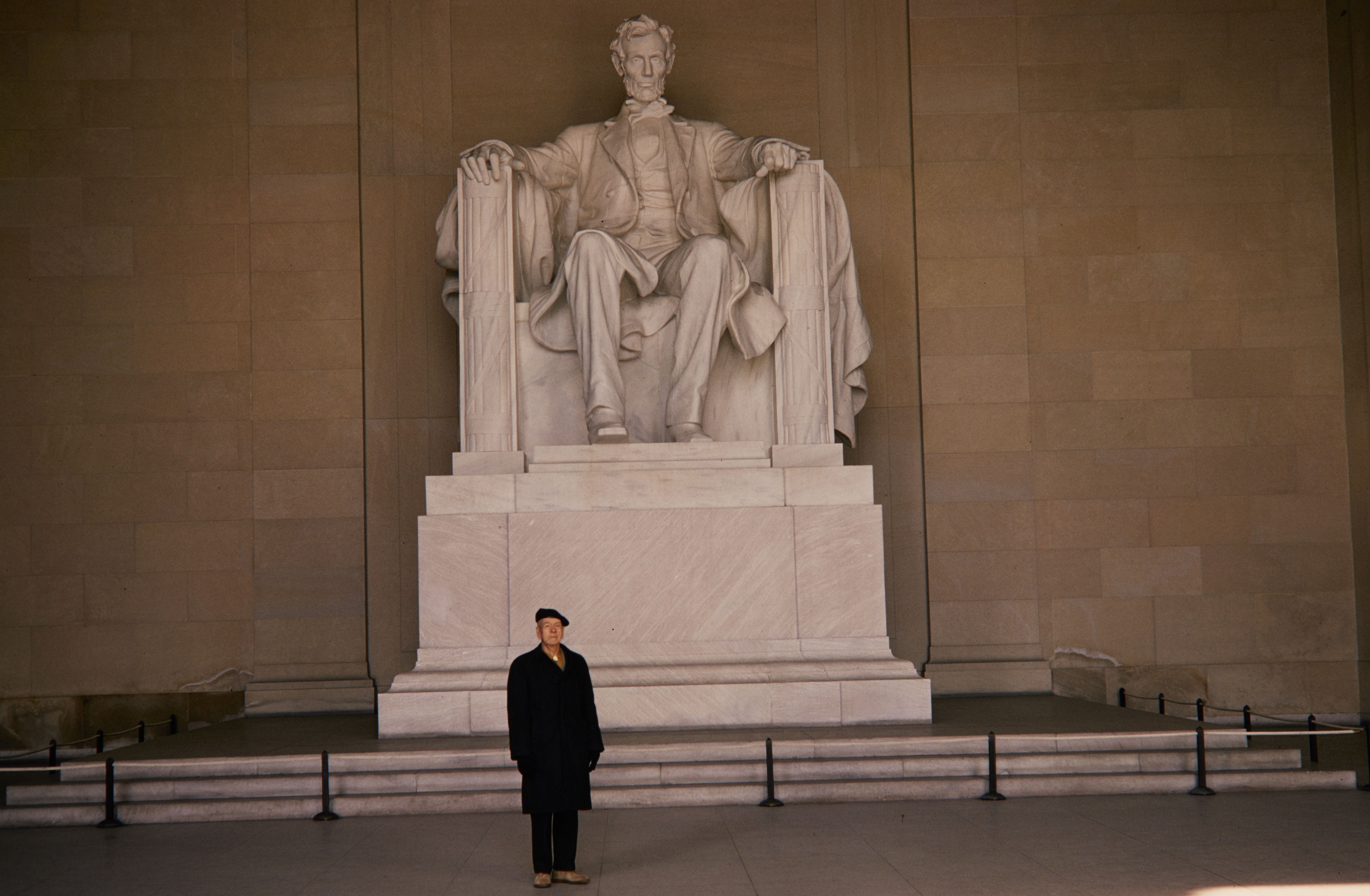 Freeman Tilden walking around the Lincoln statue in the Lincoln Memorial at National Mall and Memorial Parks.