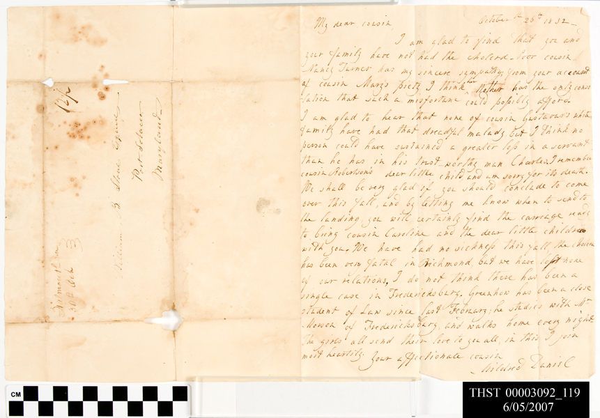 Letter, October 26, 1832, by Mildred Daniel, obverse
