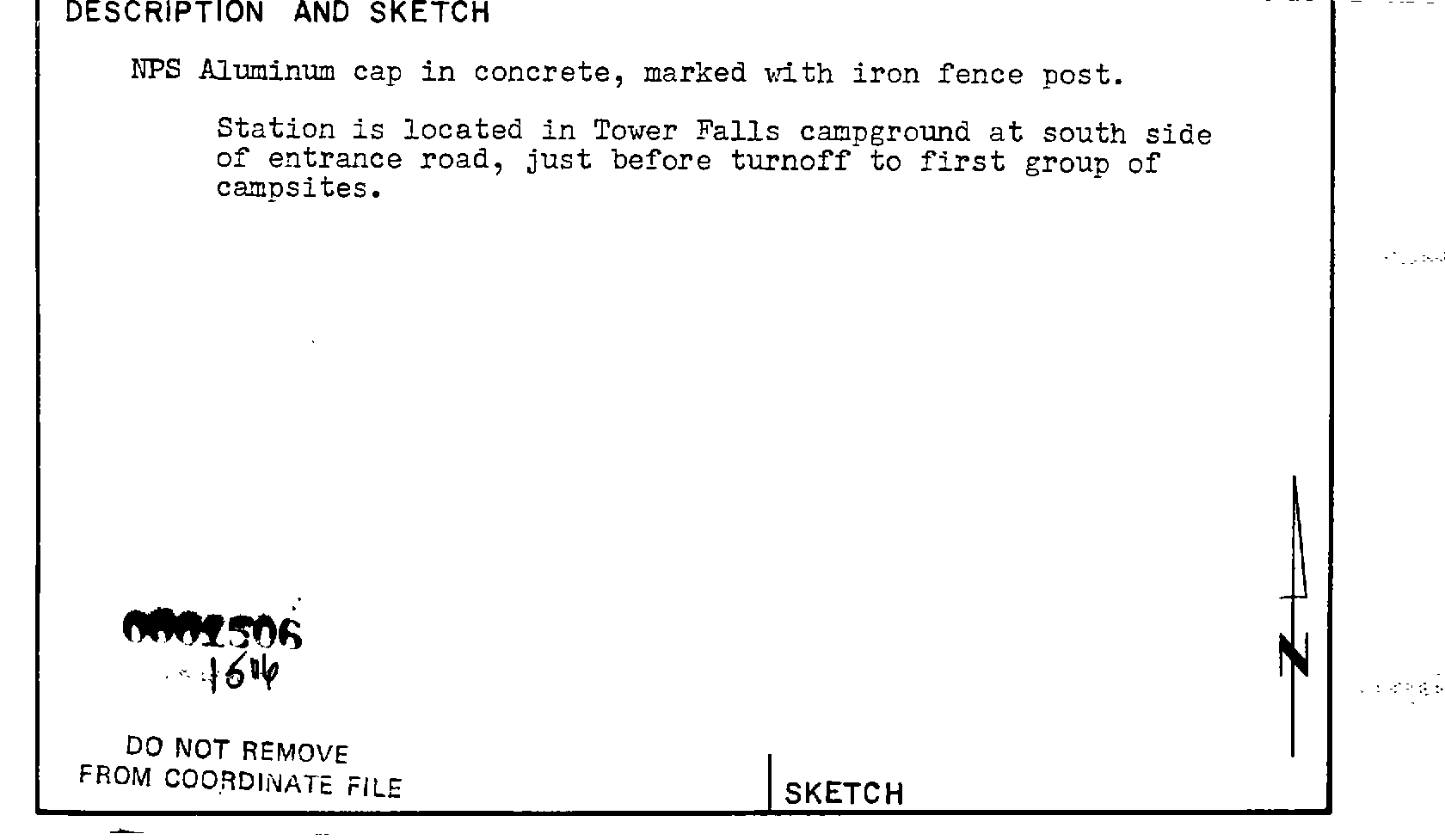Survey monument record sheet, Sketch number: 00001506