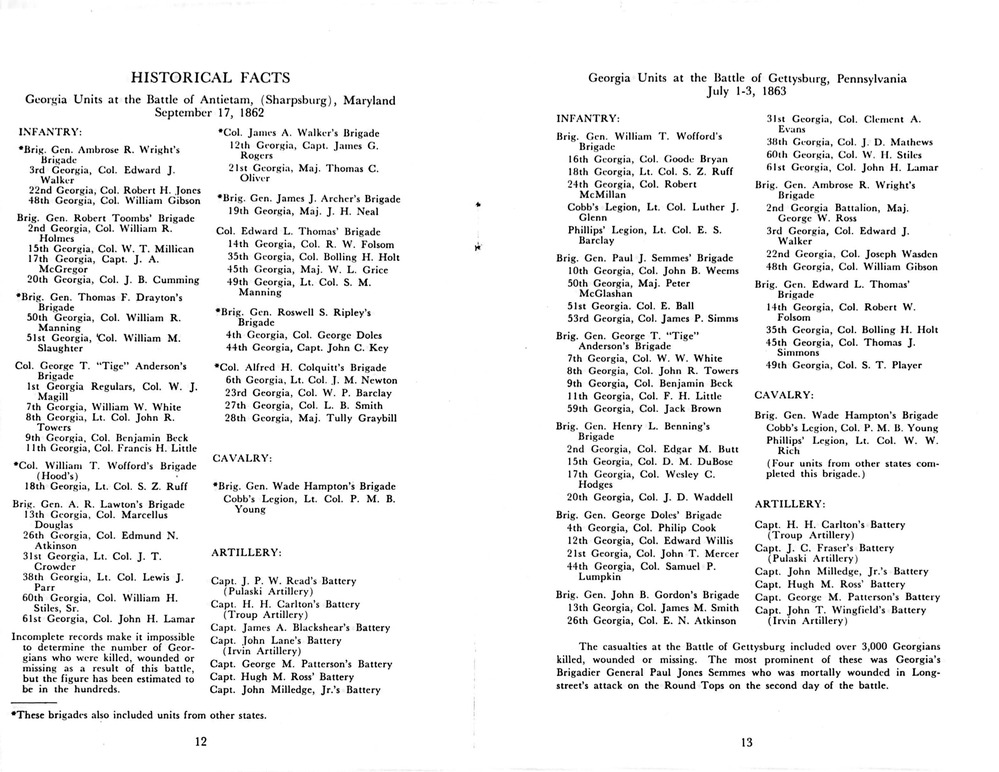 Georgia Units at the Battle of Gettysburg, Pennsylvania July 1-3, 1863