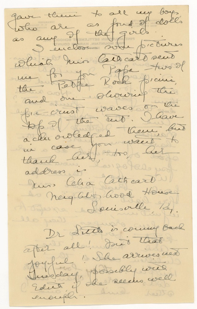 [printed letterhead: Pine Mountain Settlement School]