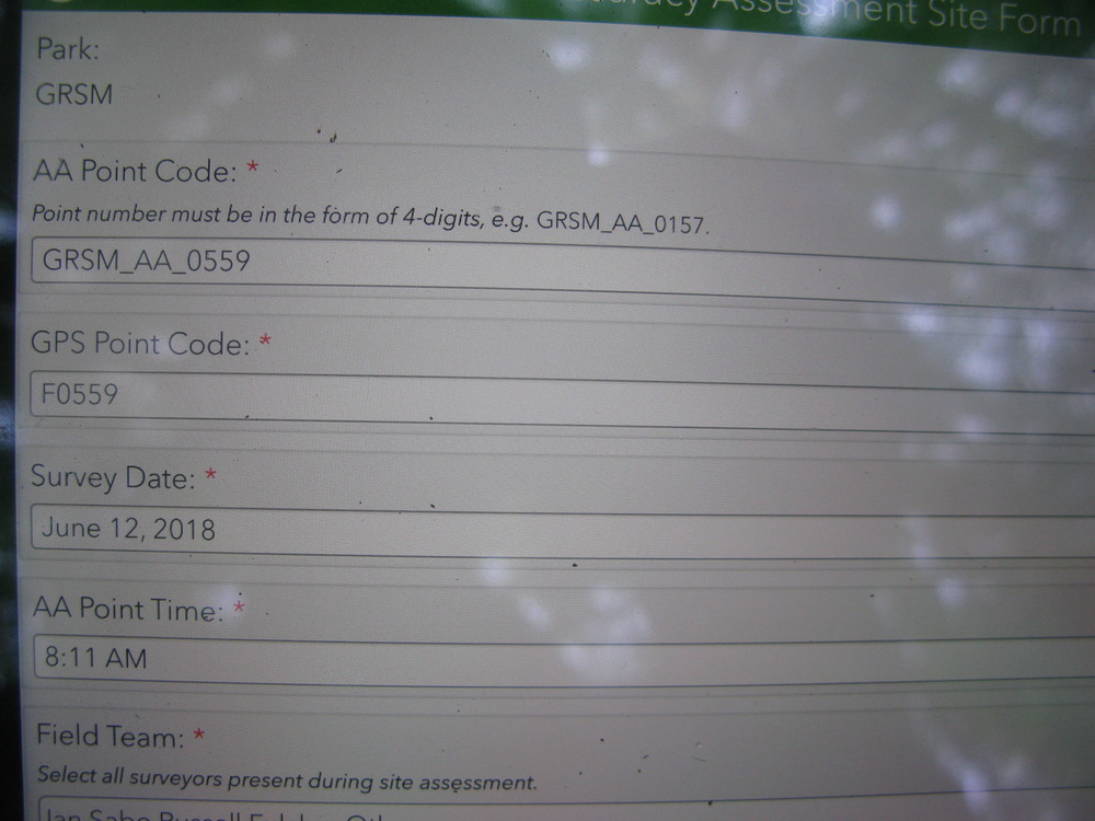 GRSM Accuracy Assessment. Plot Code: GRSM_AA_0559_1