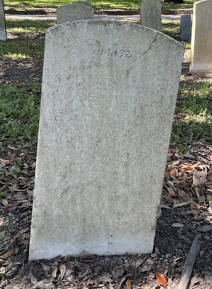 Headstone at Chalmette National Cemetery. Grave ID: 14492. Located at Section 173, Row 3, Site Number 9. Photo taken as part of the 2024 condition assessment and inventory.