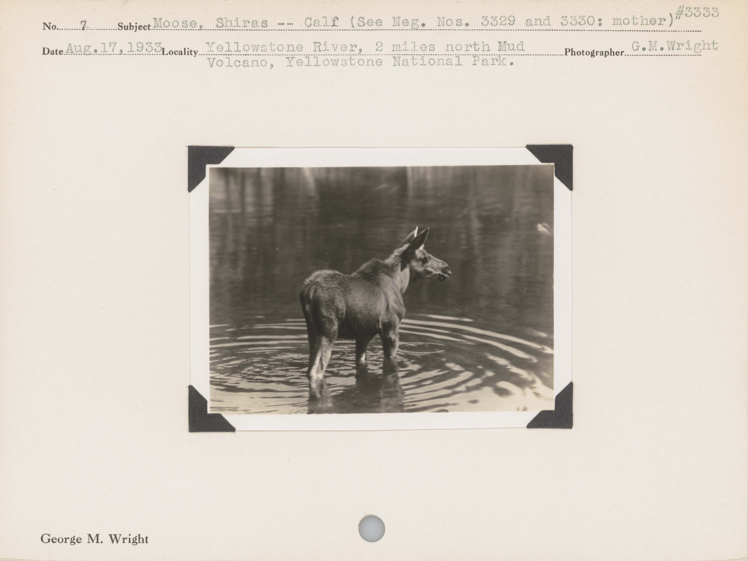 Moose, Shiras--Calf . Locality: Yellowstone River, 2 miles north Mud Volcano, Yellowstone National Park. Negative #: 3333. (See Neg. Nos. 3329 and 3330: mother)
