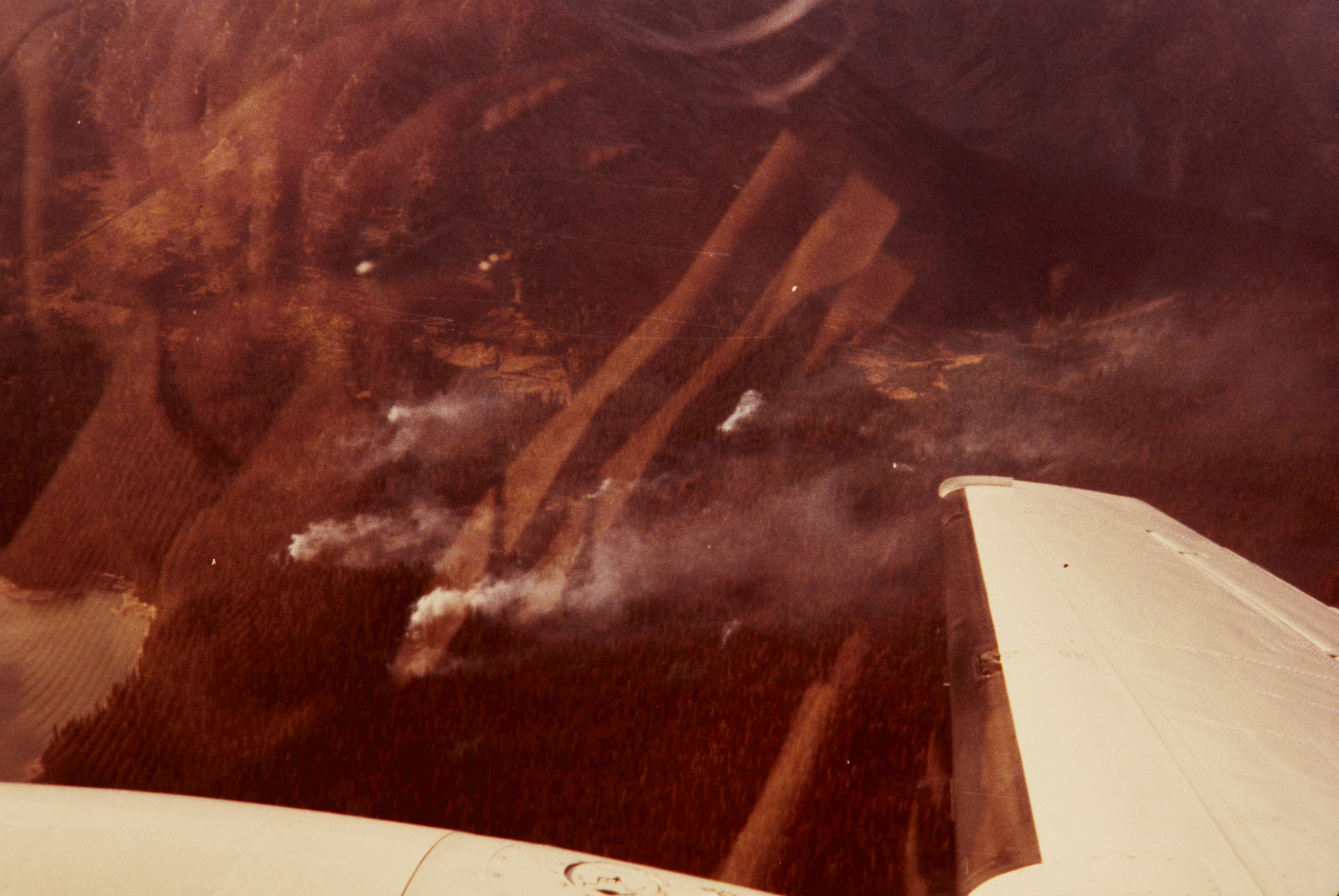 Fires and Firefighting. Aerial view of a forest fire at Grand Teton National Park from an airplane.