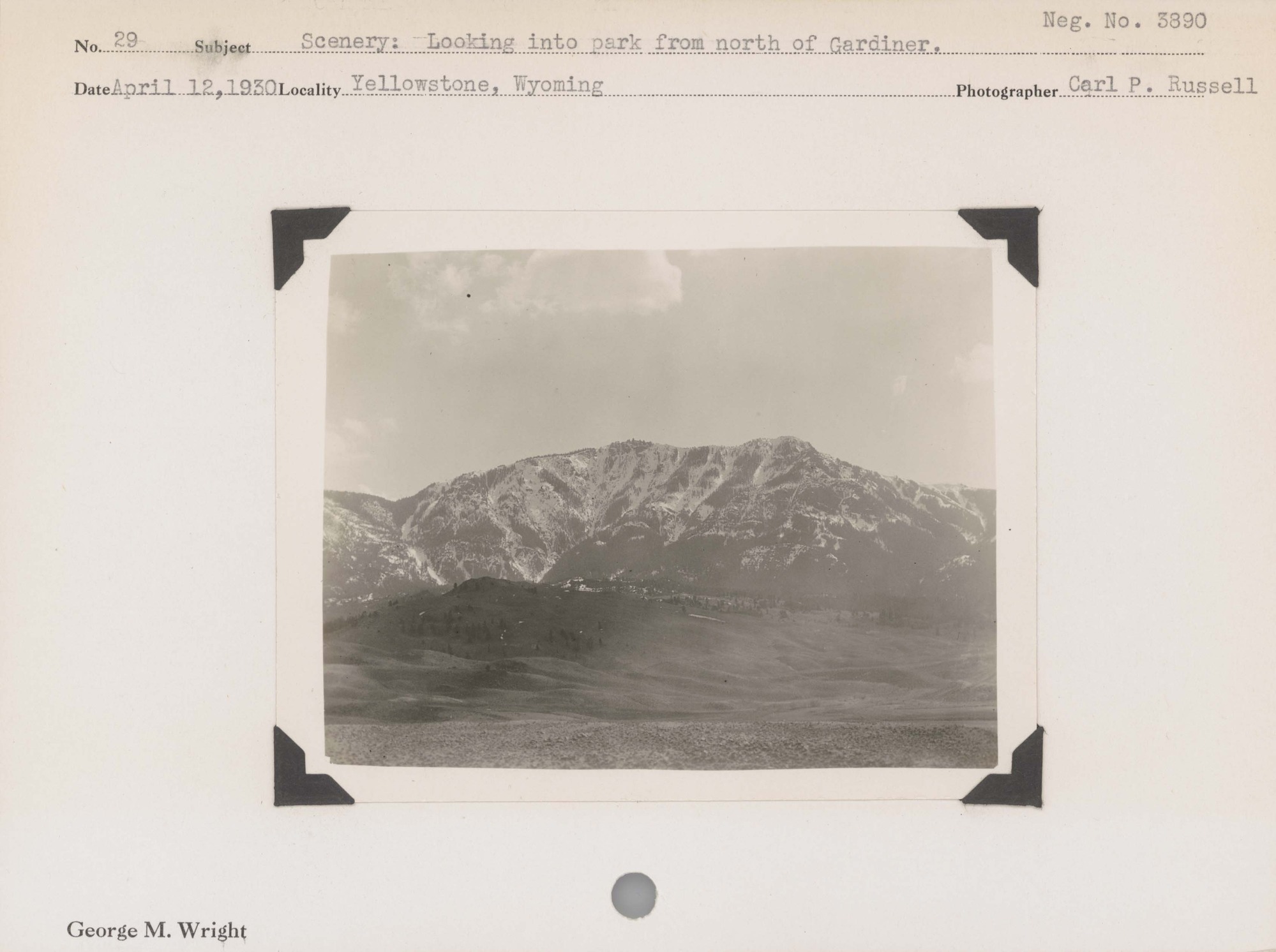 Scenery: Looking into park from north of Gardiner. Negative #: 3890. Location: Yellowstone National Park, Wyoming.