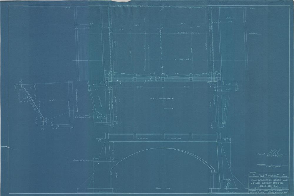 Joyce Street Bridge--Plan and elevation (south half)--Orange, NJ [1916.06.05] Sheet no. 2 of 3