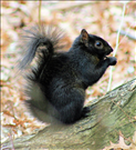 Most visitors are familiar with the common gray squirrel but what about the melanistic gray squirrel, pictured here? Instead of the common gray or brown fur, they are a striking and conspicuous black color. Once much more common in the east, scientists believe that the black color became an evolutionary disadvantage as old-growth forests gave way to farmed and urban areas so that the lighter gray color provided better camouflage than black. The melanistic color gene is actually dominant and the gray color gene is recessive! That means a much higher percentage of the gray squirrel population carries both recessive gray genes. However, if a squirrel has even one melanistic gene then it will be partially or completely black. Winter is a great time to spot these conspicuous squirrels as they bound through the dry leaves on the forest floor.