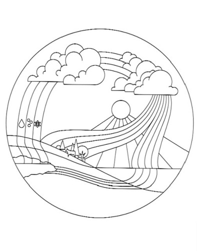 Illustration depicts a water cycle.