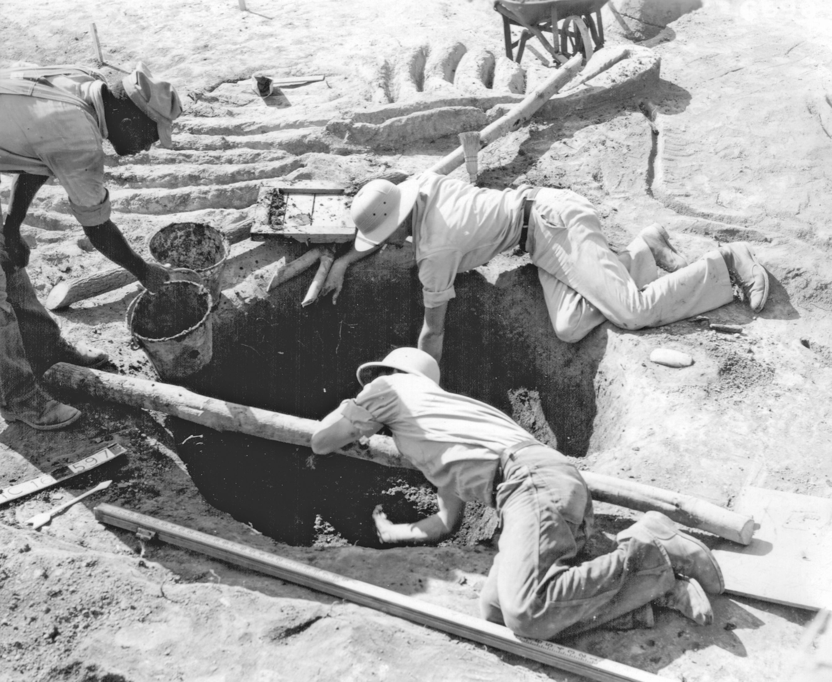 Cotter's excavations at Bynum included both the village area, which would be damaged by the planned parkway construction, and 3 of the 6 mounds. He found that the site was inhabited for a century or two during a time when Native Americans in the Southeast were beginning to construct earthen mounds for burying their dead. The houses and other buildings in the 7-acre village were round.