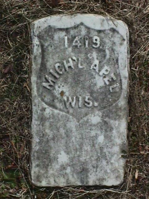Headstone for Michael Apel in Poplar Grove National Cemetery