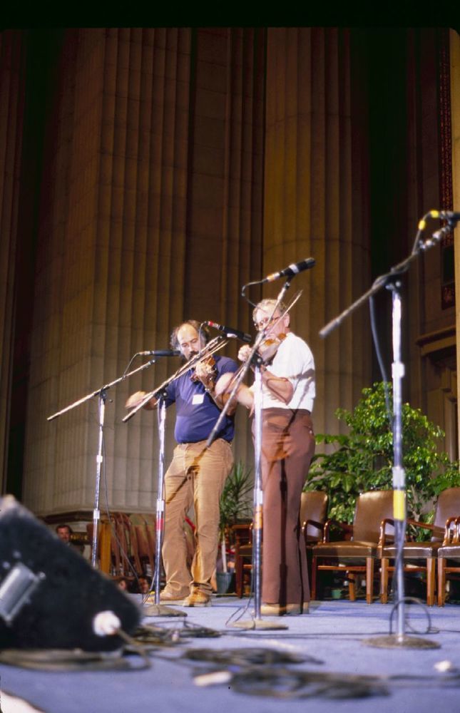 Dewey Balfa and Mike Dueet(?) performing at the Smithsonian Heritage Awards. ; 1982